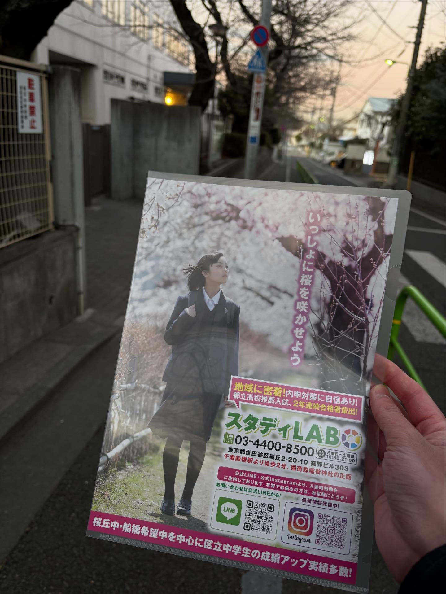 【モンパイ(校門前チラシ配布)行ってきました】 あまり得意ではないので2年ほど行っていませんでしたが、久しぶりに行ってみました🕺 塾のメンバーが、みんな気づいたら声をかけてくれて、ジュクチョーは嬉しいぞ🕺(さらにたくさん宿題出しますね笑) 普段とは違う皆の姿を見ることができるのは、結構嬉しいです。 そのうち、塾と学校の垣根を越えて色々とやってみたいですね👍 チラシ受け取ってくれた中学生の皆さん(農大生も混ざってた?笑)ありがとうございました😊 #千歳船橋  #経堂  #桜丘中学校 #学習塾  #東京農業大学