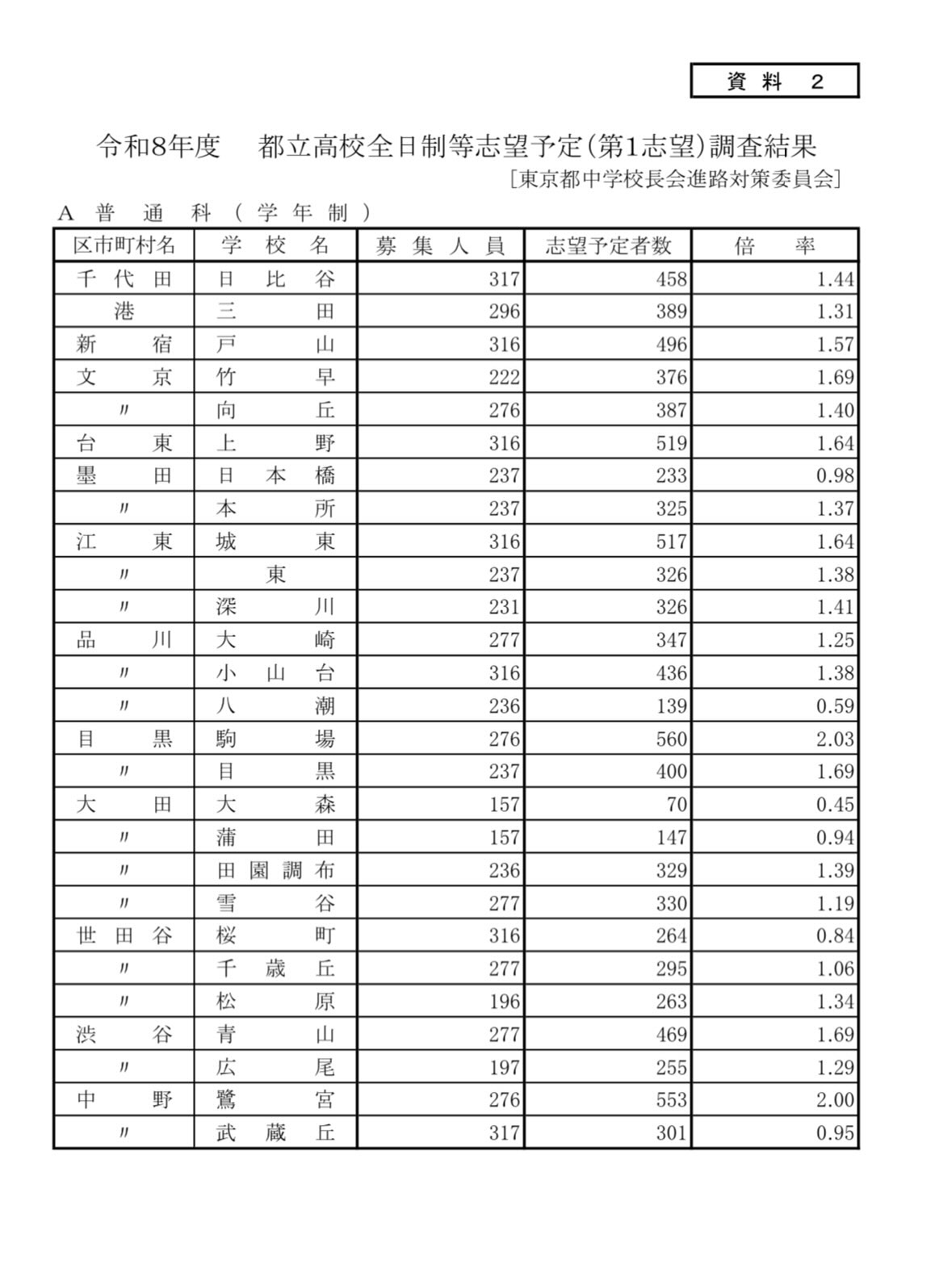 校長会「都立高校志望予定調査」が発表されました!! #千歳船橋  #都立高校 #世田谷区  #学習塾  #受験生応援